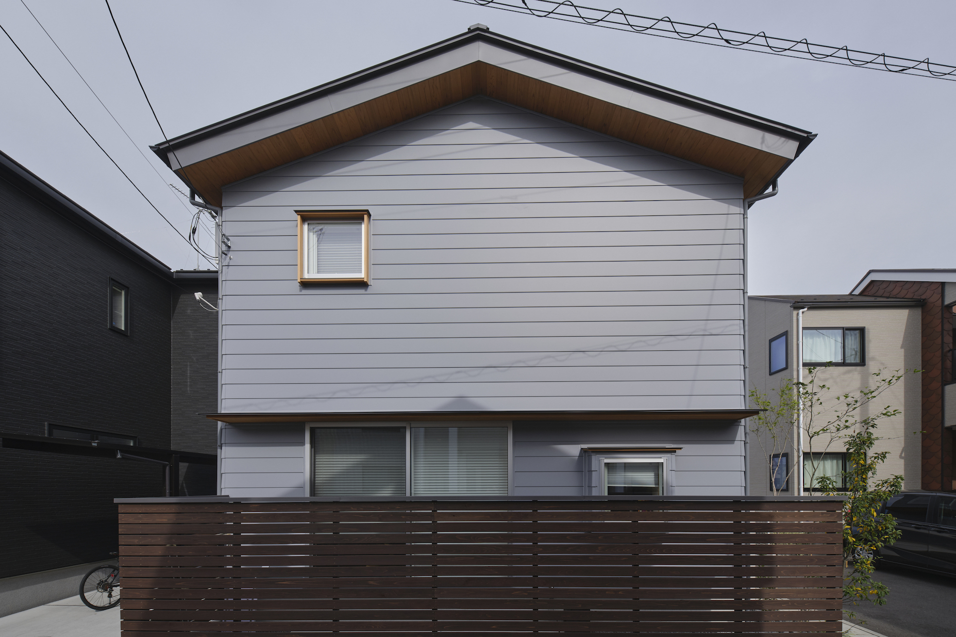 鉄骨造であるため、木造の企画ではあり得ない大きな窓を東側に取付、天井の高さを抑えめにして、居心地よい落着ける空間とした。