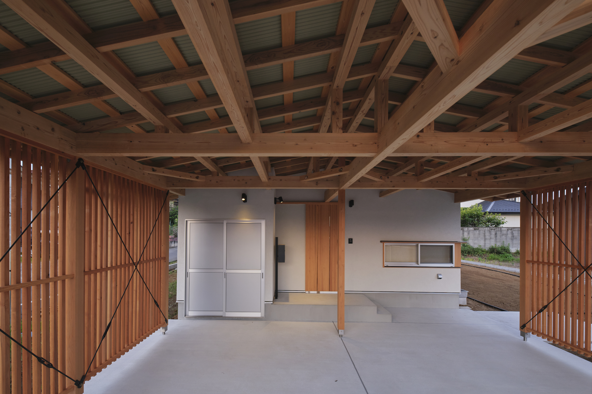 ガレージと建物を一体とし、屋敷構えを整えました。