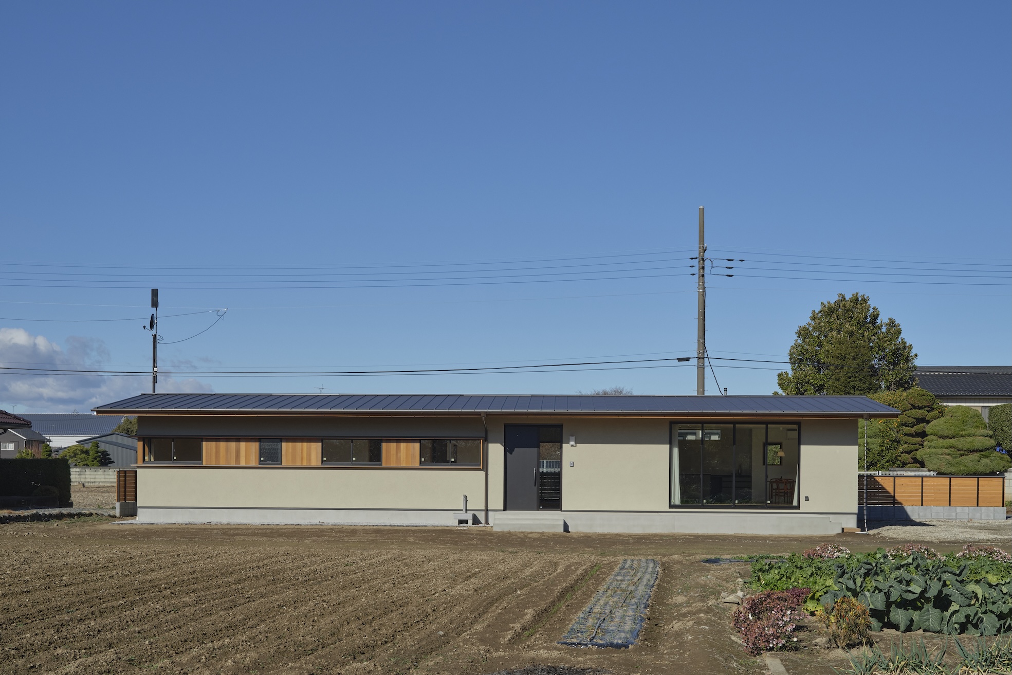 長閑な田園風景の中に佇む、家族に寄り添う平屋の計画です。